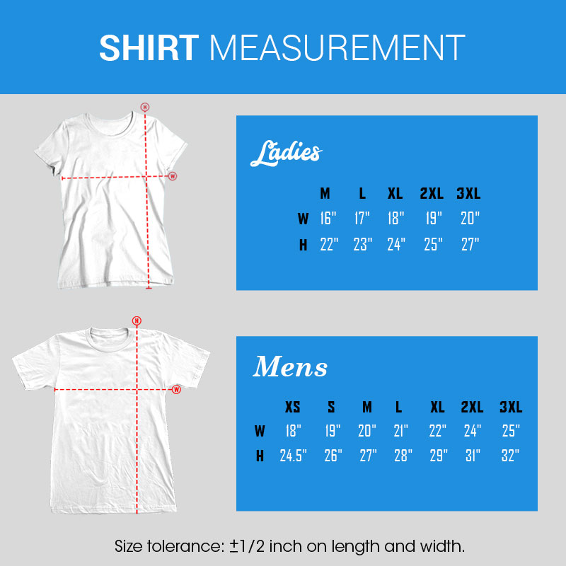 - Sizes can vary depend on the type of shirt.